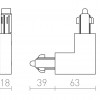 L-konektor z možnostjo napajanja za 1F tirni sistem. Maksimalna obremenitev 16A.