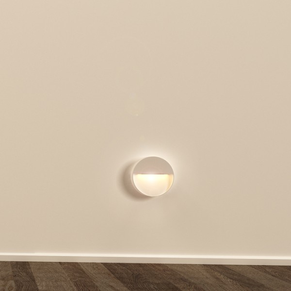 Okrogla stenska LED svetilka za orientacijsko osvetlitev pešpoti, stopnic in teras. Primerna za notranjo in zunanjo uporabo brez vgradnje.