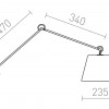 Stenska svetilka s tekstilnim senčnikom, nastavljivo roko in stikalom na osnovi.