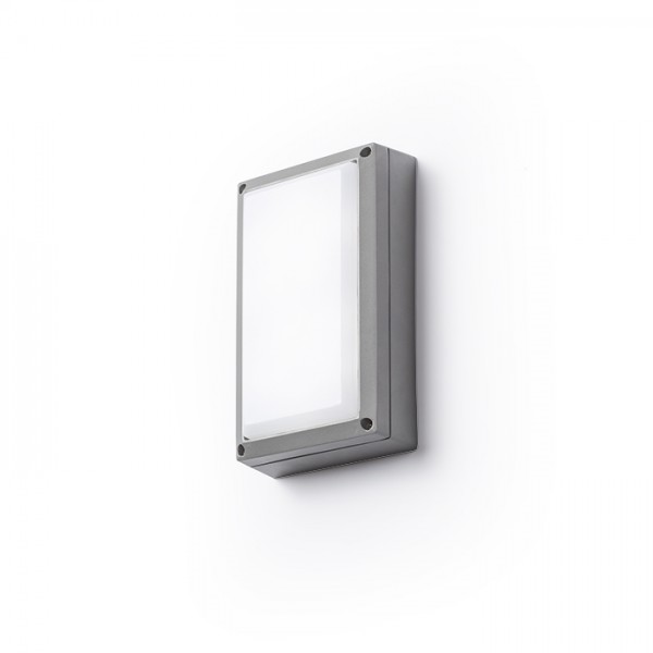 Zunanja stenska svetilka iz litega aluminija z difuzorjem iz opalnega akrila. Za energijsko varčne E27 svetlobne vire.