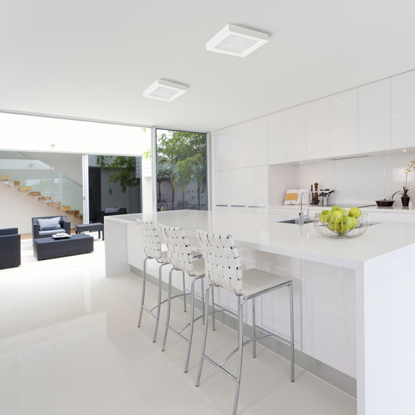 Stropna mavčna svetilka s satiniranim steklom za tri energijsko varčne E27 svetlobne vire.