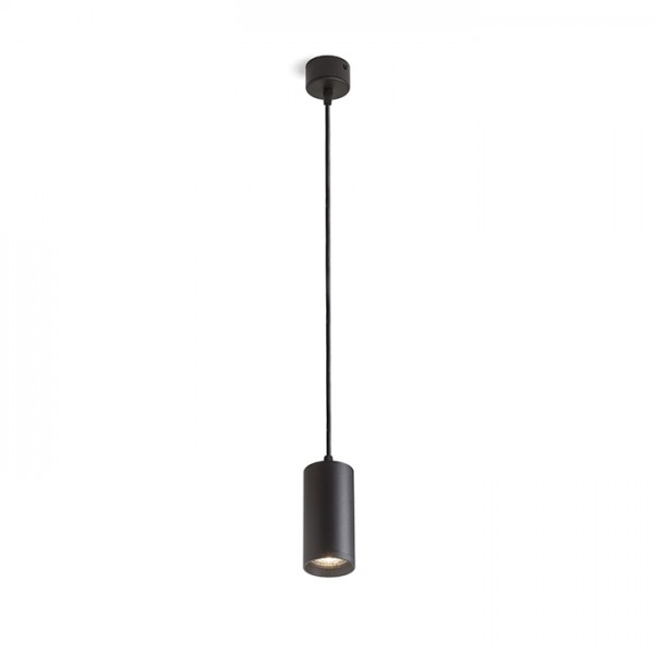 Minimalističen cilindrični reflektor na okrogli osnovi za GU10 svetlobne vire. Vzmeti pritrjene na grlo omogočajo uporabo svetlobnih virov različnih dolžin.