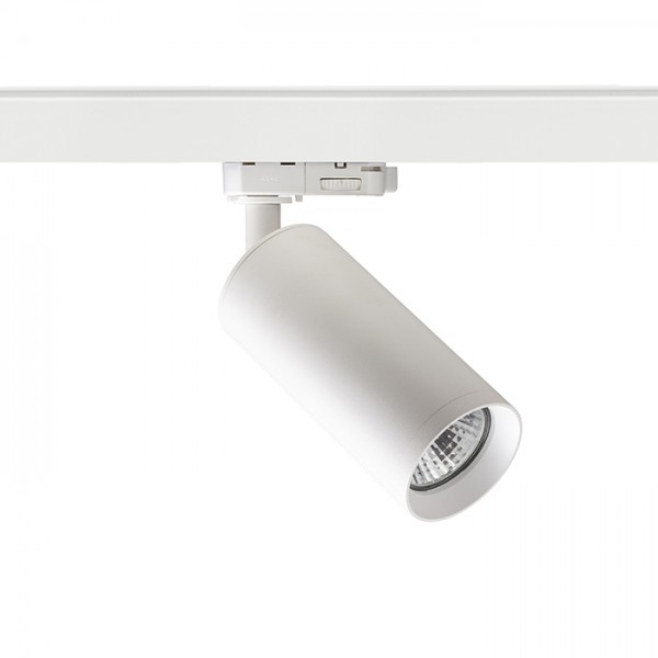 Minimalističen cilindrični reflektor za 3F tirni sistem, za GU10 svetlobne vire. Vzmeti pritrjene na grlo omogočajo uporabo svetlobnih virov različnih dolžin.