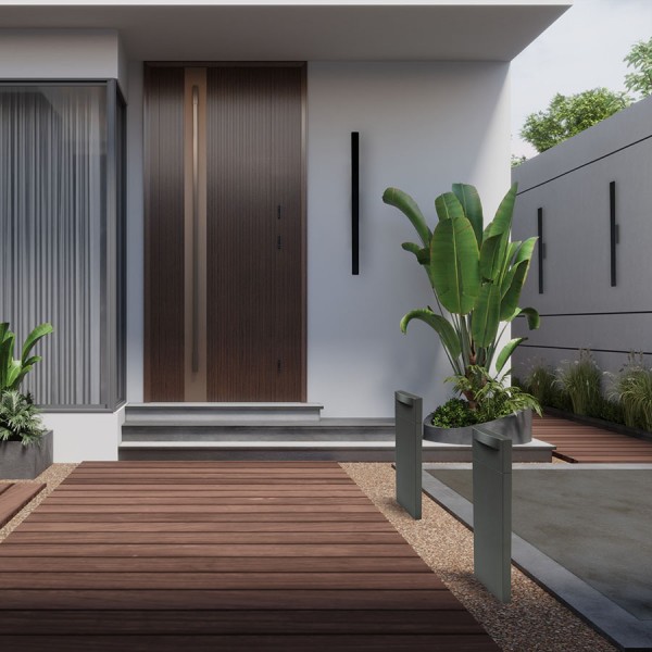 Zunanji stebriček iz aluminija z vgrajeno LED za diagonalno navzdol osvetlitev poti in dovozov.