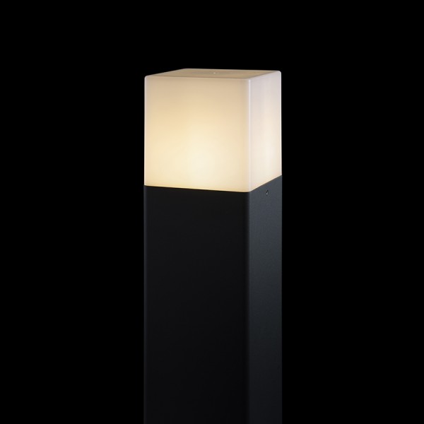 Zunanji stebriček z opalovim odtenkom in E27 vtičnico za LED svetlobne vire.
