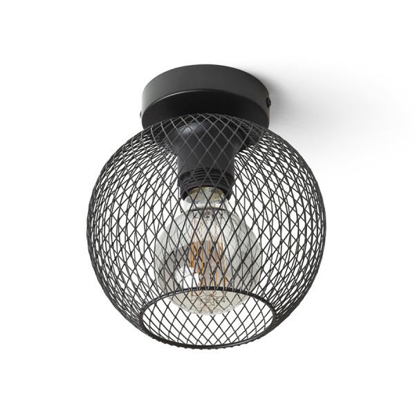 Stropna svetilka v obliki krogle iz fine perforirane kovine, primerna za dekorativne LED svetlobne vire s podstavkom E27. Največji možen premer svetlobnega vira znaša 8 cm.
