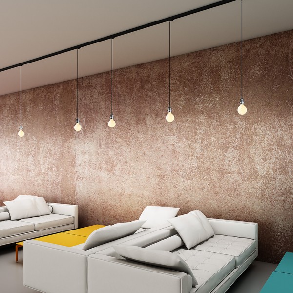 Tekstilni kabel v različnih barvnih kombinacijah s kovinskim E27 grlom in adapterjem za 3F tirni sistem. Za uporabo z okrasno sijalko ali ustreznim senčnikom.