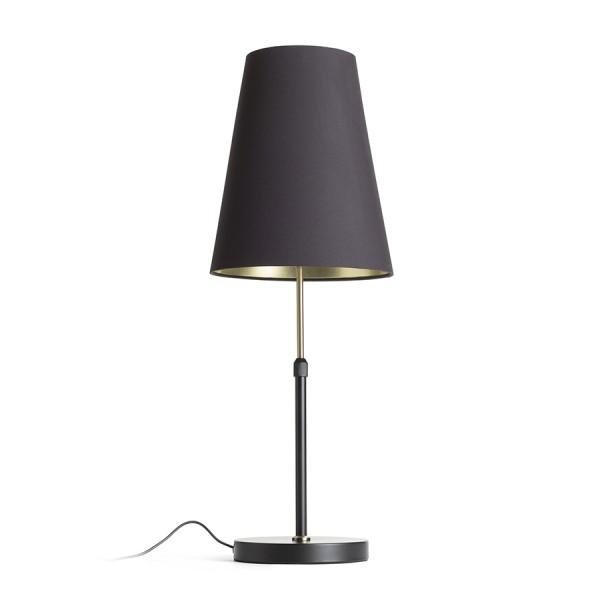 Po višini nastavljiv podstavek za namizno svetilko, z lakiranim zaključkom in kromiranimi ali medeninastimi poudarki. Za senčila z vgradnjo E27. Primerno za naslednje odtenke: AMBITUS 30/21, CONNY 25/30, CONNY 35/30, RON 15/20.