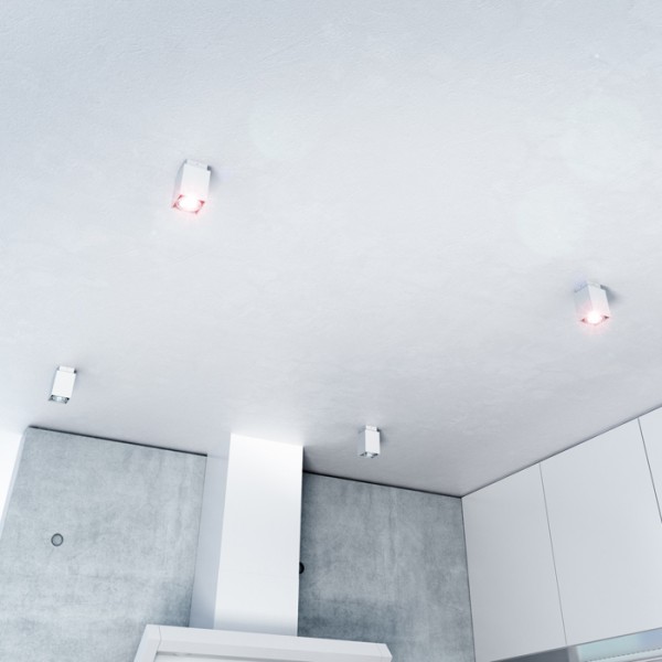 Kvadratna stropna svetilka z odmikom od stropa za fiksni halogenski svetlobni vir.
