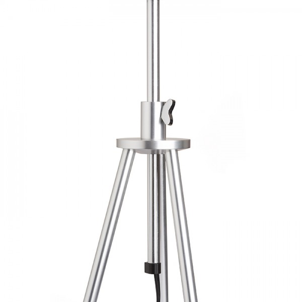 Namizna svetilka z E27 grlom na trinožniku z nastavljivo višino in tekstilnim senčnikom.