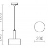 Viseča svetilka z lakiranim kovinskim senčnikom in tekstilnim kablom. Kabel je pritrjen na adapter za 3-krožne tire.