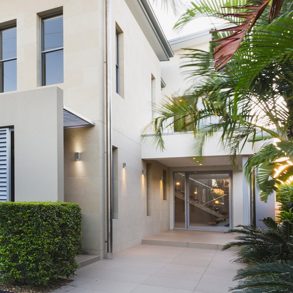 Betonska stenska svetilka z vtičnico GU10 za LED svetlobne vire, za zunanjo uporabo.