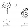 Namizna svetilka z okrasnim senčnikom, okrašenim z barvnimi gumbi. V podstavek iz imitacije bukve z belo lakiranimi detajli je vgrajen USB priključek. Primerno za svetlobne vire LED E27.