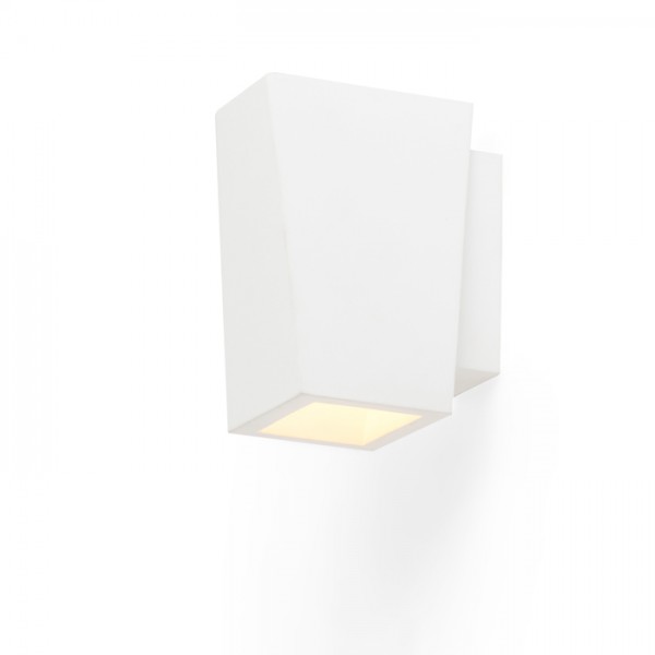Stenska mavčna svetilka asimetrične oblike. Montaža z ožjo odprtino, usmerjeno navzgor. Možnost barvanja z barvo interjerja. Premer osnove V/Š/D 10/5/2 cm, premer odprtin D1/Š1 10/5,5 cm, D2/Š2 7/8 cm.
