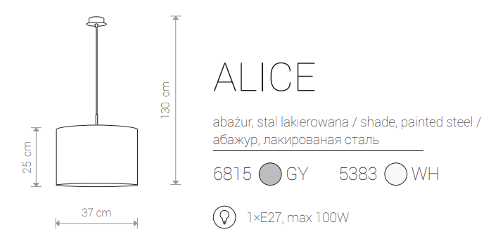 LED Notranja , ALICE white zwis M, 100W, 1xE27, IP20