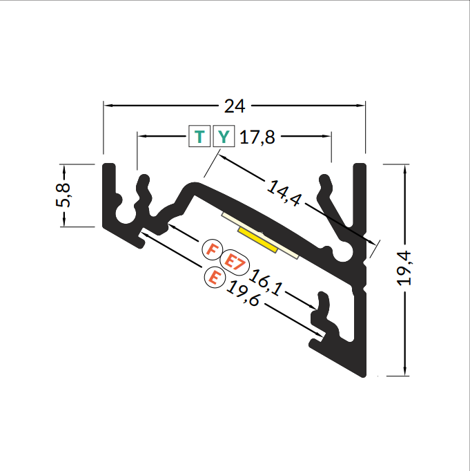 LED profil, CORNER14 EF/TY, alu-belo barvan, 2m