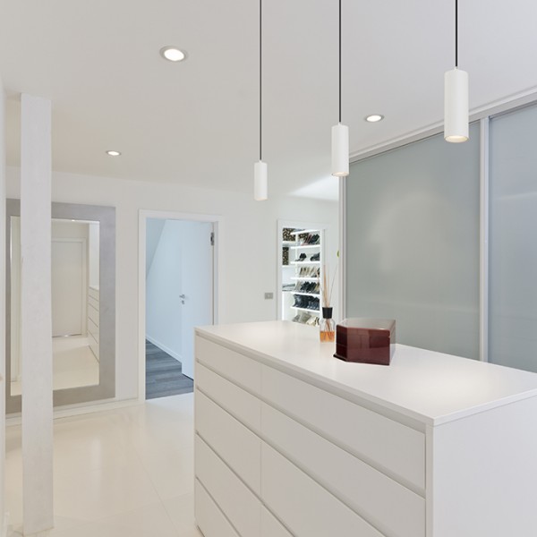 Eleganten viseči cevni LED reflektor primeren za uporabo nad kuhinjskim ali barskim pultom.