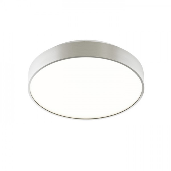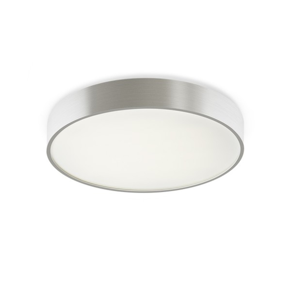 Stropna okrogla LED svetilka z okvirjem iz brušenega aluminija. Difuzor iz lakiranega mat polikarbonata.