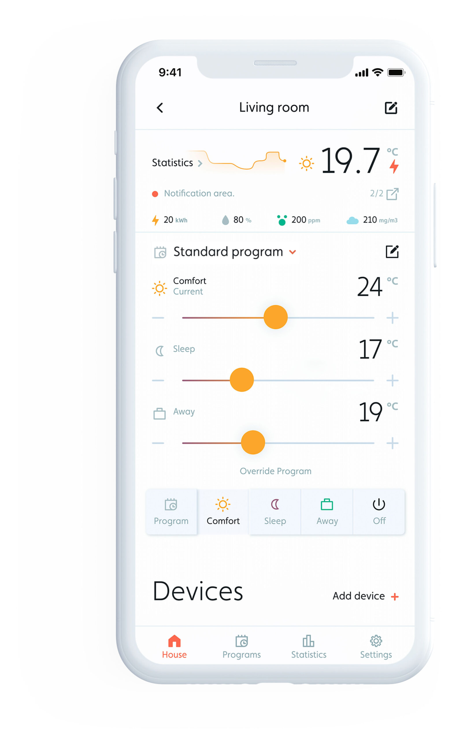 - Preglasite nastavljene programe za celotno hišo, posebno sobo ali določen grelec. Programa ni treba urejati, če prideš domov prej kot običajno en dan)