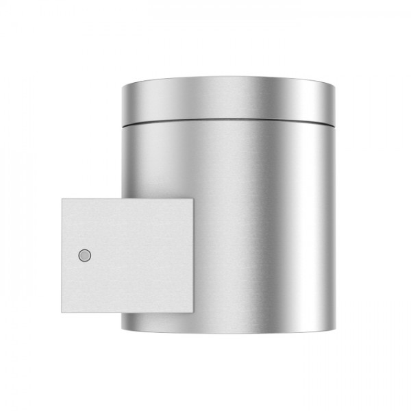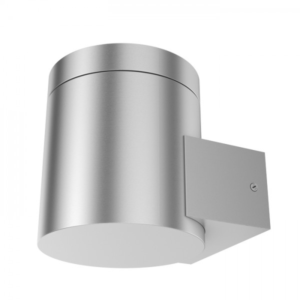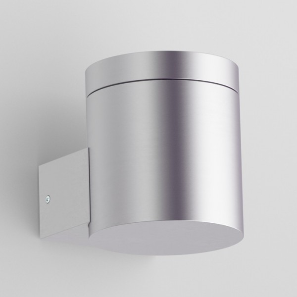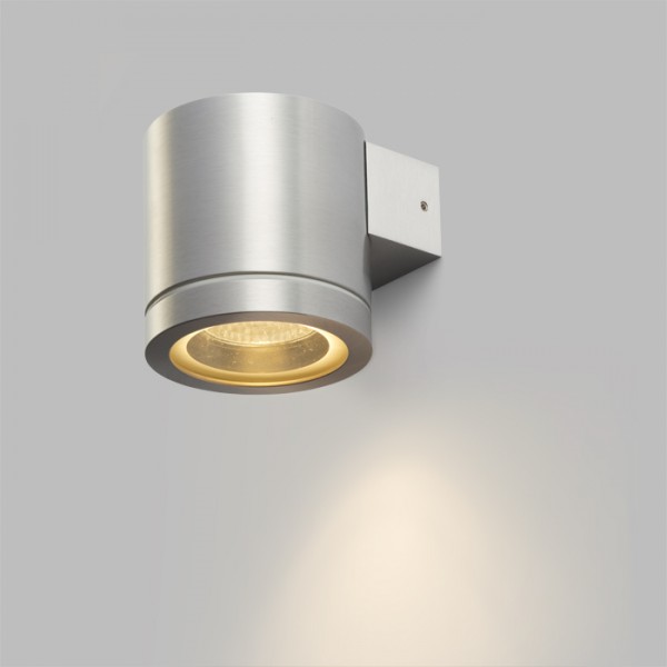 Stenska svetilka iz naravnega aluminija s steklenim pokrovom, za enosmerno razsvetljavo.