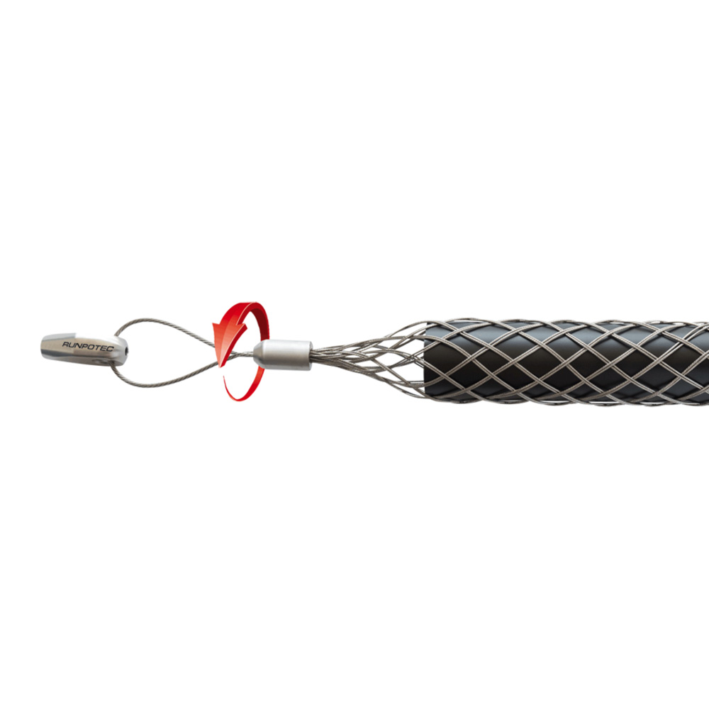Nastavek za vleko kablov je izdelan iz prožne žične mreže iz nerjavečega jekla. Optimalen za vleko kablov brez odstranitve izolacije. Z navojem M12 in dodatnim navojem M6. Največja vlečna obremenitev 1200 kg. Združljivo z vsemi Runpotec izdelki z navojem RTG fi 6 mm in RTG fi 12 mm.