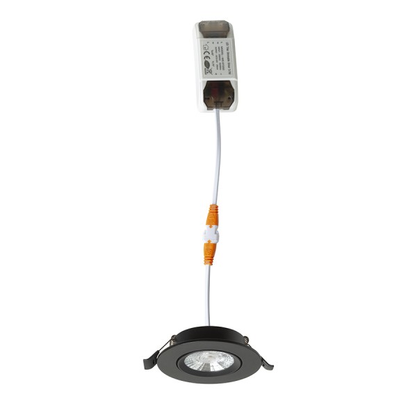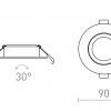 Vgradna zatemnitvena LED svetilka za vgradnjo v suhomontažne strope z majhno globino vdolbine. TRIAC zatemnitev.