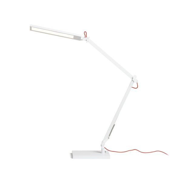 Delovna namizna svetilka z vgrajeno LED diodo, zglobno roko in zatemnilnim stikalom na vrhu reflektorja za tristopenjsko zatemnitev in nastavljivo barvno temperaturo. Svetilko lahko pritrdite na mizo ali polico z nakupom ločene EMA C-objemke (R14290, R14291).