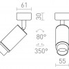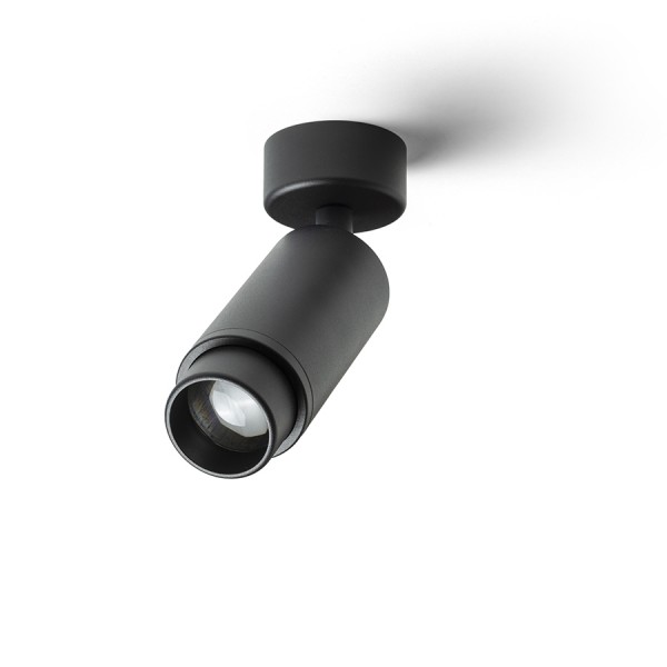 Cilindrični obesek z vtičnico GU10 za LED svetlobne vire, ki lahko s tako imenovano funkcijo povečave prilagodi kot žarka med 10 in 50 °. Da bi se izognili neželenim sencam, je treba svetlobo dopolniti z viri svetlobe, ki imajo kot snopa 120 °.