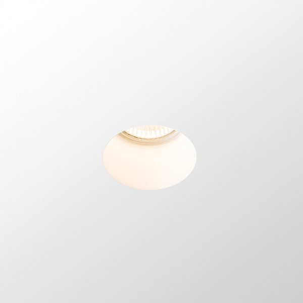 Mavčna svetilka s krožno odprtino in brez okvirja. Možnost barvanja z barvo interjerja. Samo za nameščanje v mavčno ploščo.