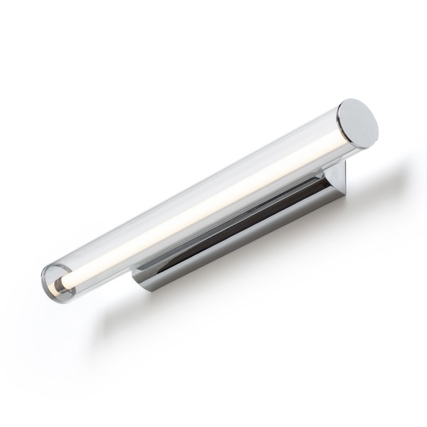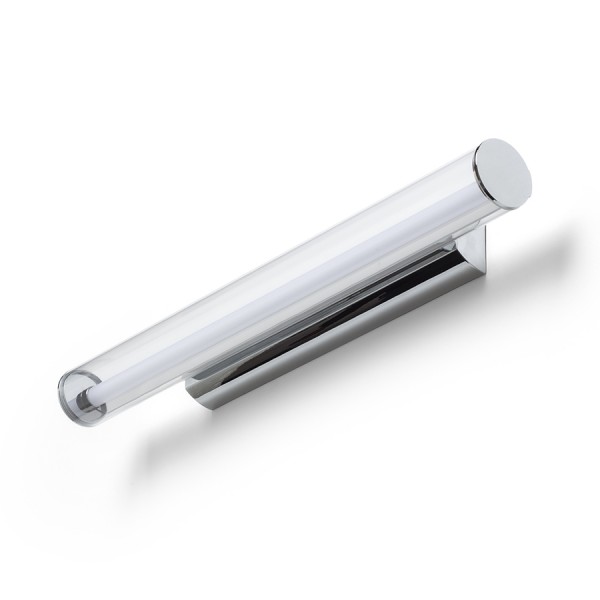 Nadometna LED svetilka s prozornim akrilnim pokrovom na kromiranem podstavku.
