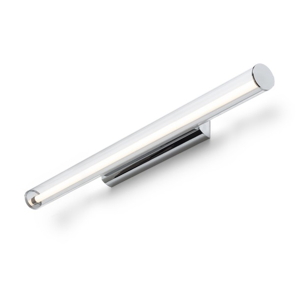 Nadometna LED svetilka s prozornim akrilnim pokrovom na kromiranem podstavku.
