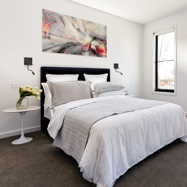 Stensko LED svetilo s poličko za polnjenje telefona in integriranim USB vhodom. LED točkovno svetilo na prilagodljivem vratu in indirektna osvetlitev se upravljata ločeno s pomočjo dveh stikal.