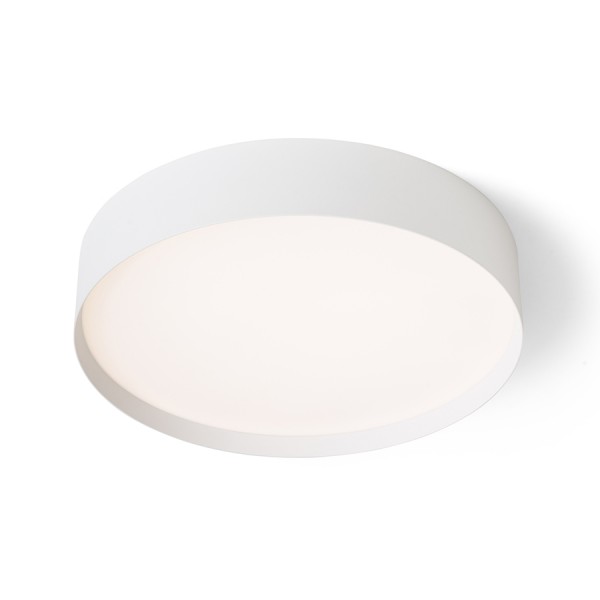 Nadometna LED svetilka z minimalističnim okvirjem in rahlo poglobljenim mlečnim difuzorjem. TRIAC zatemnitev.