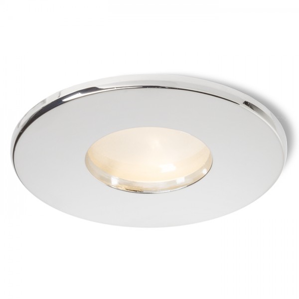Vgradna metalna svetilka primerna za vlažno okolje. Na voljo v različicah iz svetlečega kroma in mat niklja.