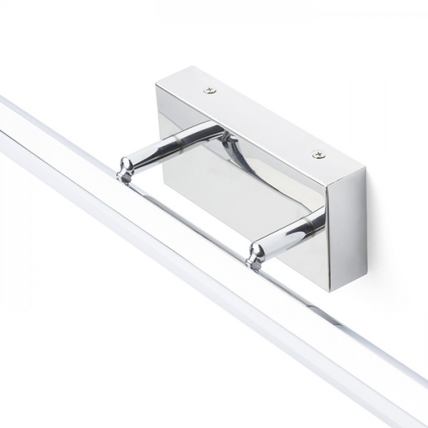 Podolgovata LED svetilka z nagibno funkcijo. Primerna za montažo nad ogledalom ali sliko.