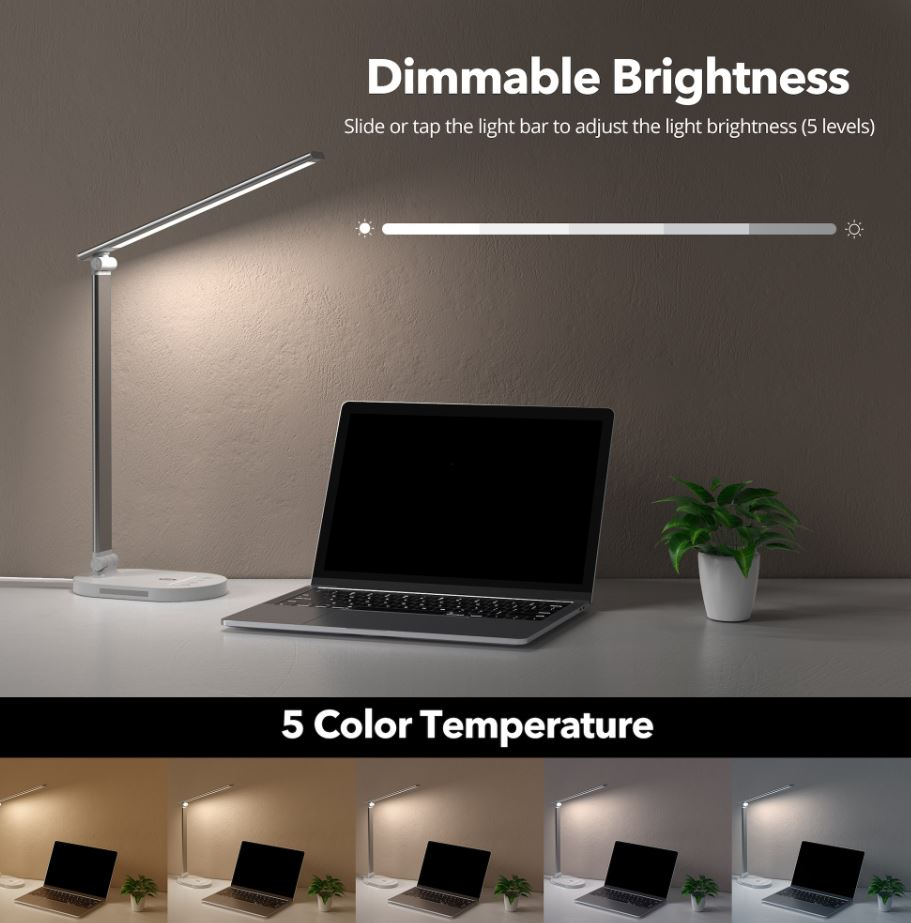 Namizna svetilka s 5 barvnimi temperaturami in 5 različnimi stopnjami svetlosti, ki jih lahko izberete tako, da najbolje ustrezajo vašim potrebam