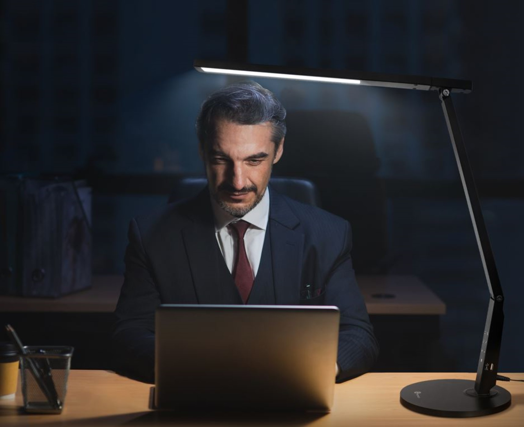Prijetna namizna svetilka za branje, delo in učenje brez utripanja in senc; prijazna za oči, povzroča manj utrujenosti