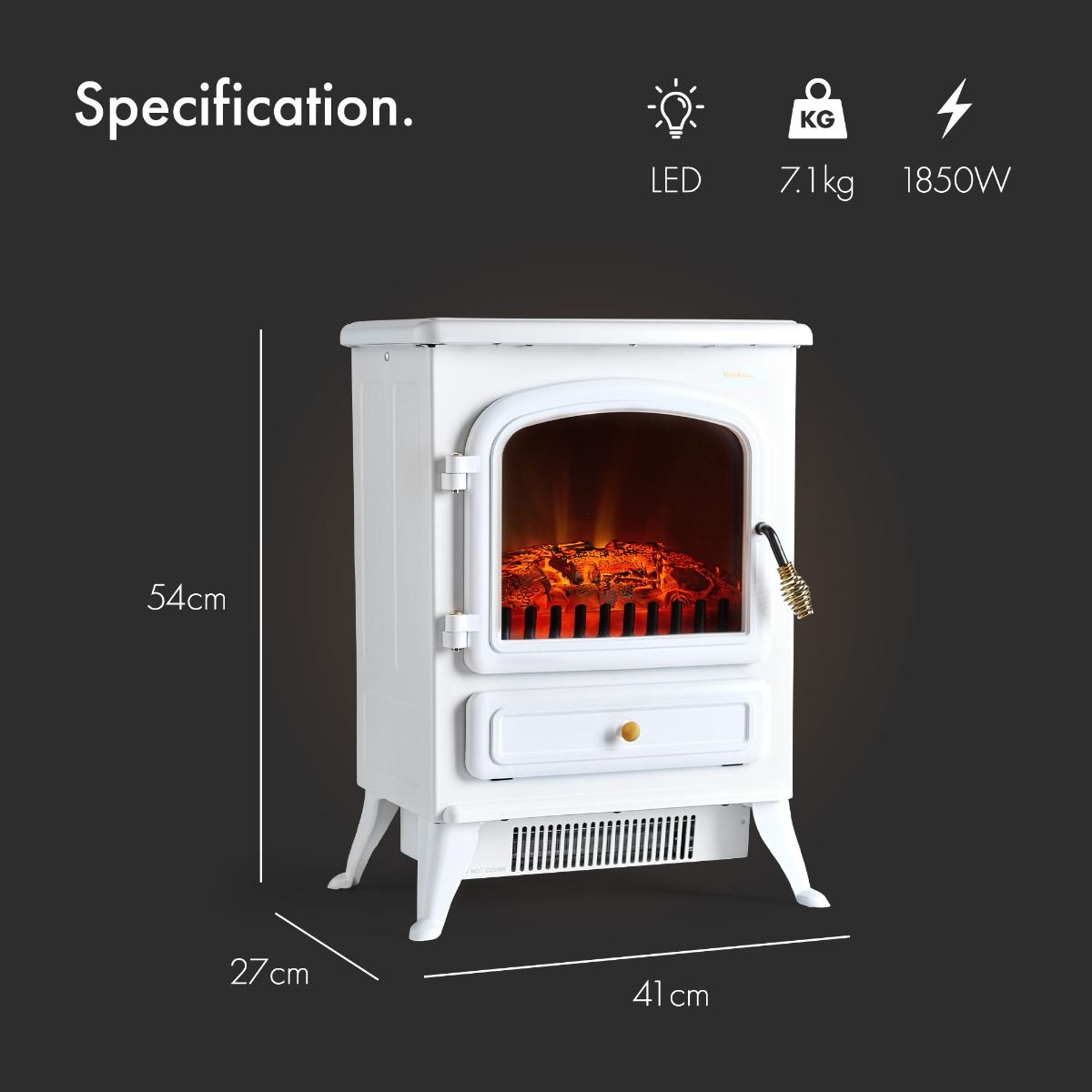 Peč greje prostore do 53 m² in ima 2 nastavitvi toplote – 925 W in 1850 W.